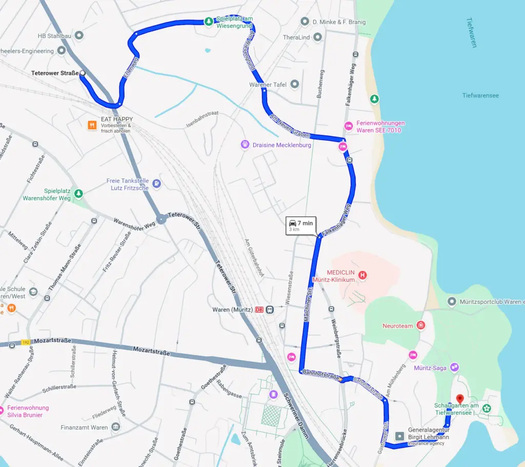 Unser Hotel genießt eine zentrale Lage in Waren, was es zu einem idealen Ausgangspunkt für Geschäfts- und Freizeitreisende macht. Erkunden Sie die Stadt doch zu Fuß. Nicht nur die Stadt, sondern auch der Bahnhof sind fußläufig bequem in zehn Minuten zu erreichen.